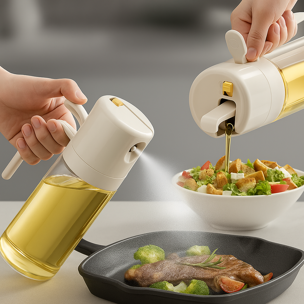 A sleek, reusable oil spray bottle that delivers a fine, even mist for healthy, controlled cooking. Perfect for oils, marinades, and more, while being eco-friendly and easy to clean.